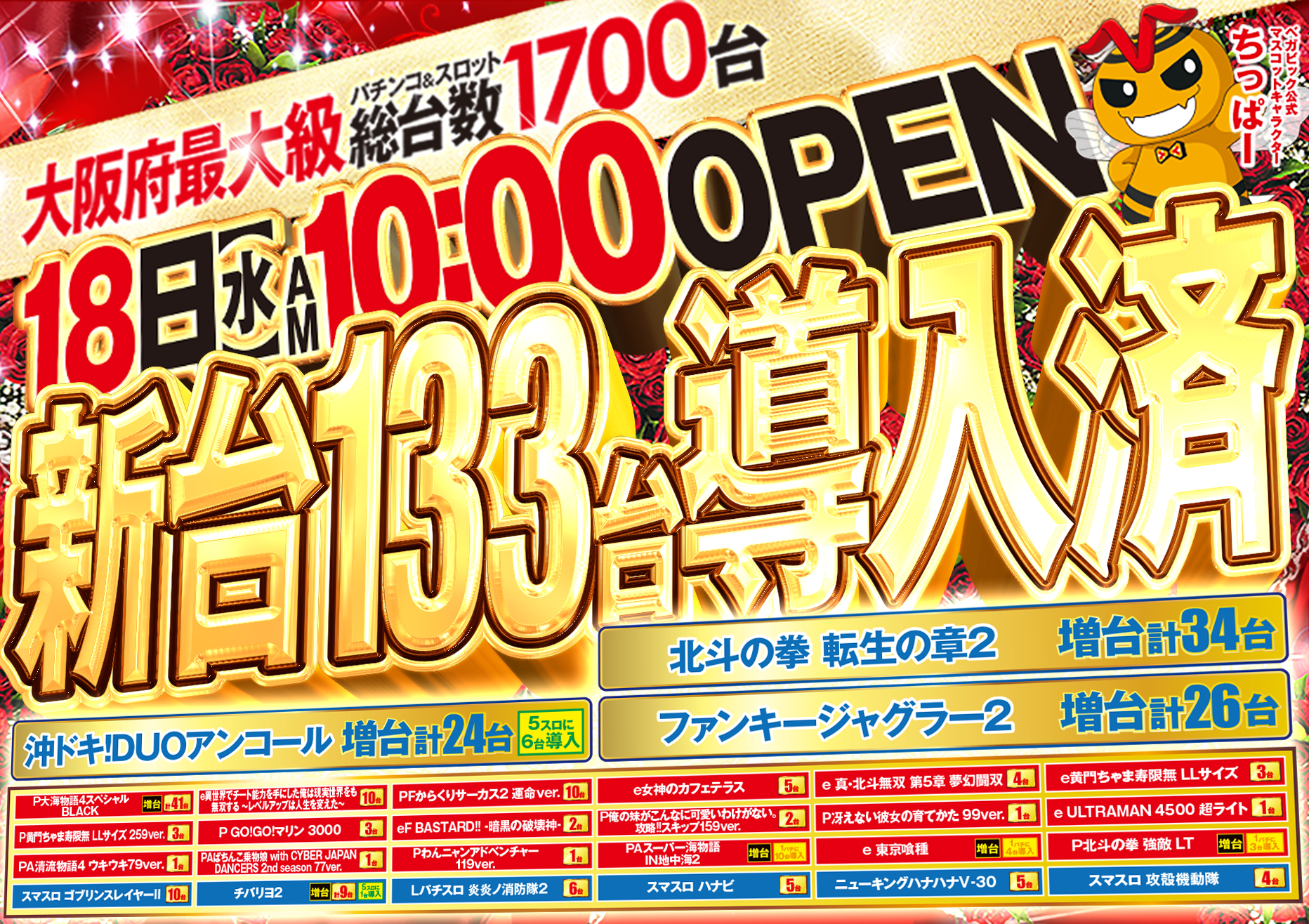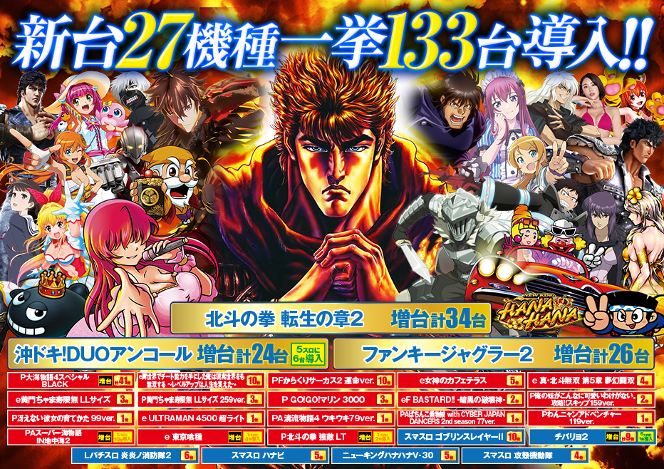 | 定休日 | 不定期(新台入替時お休みを頂く場合があります) |